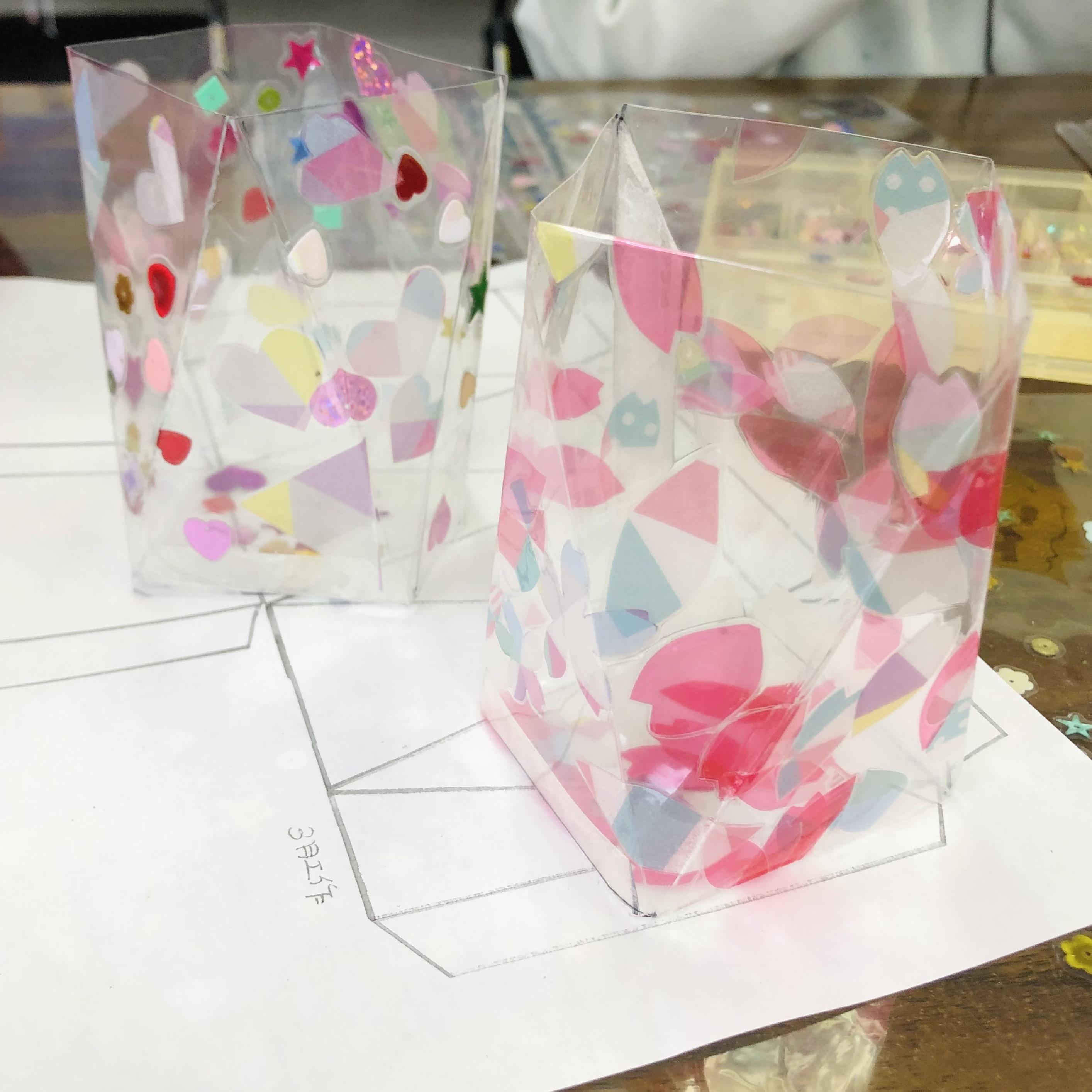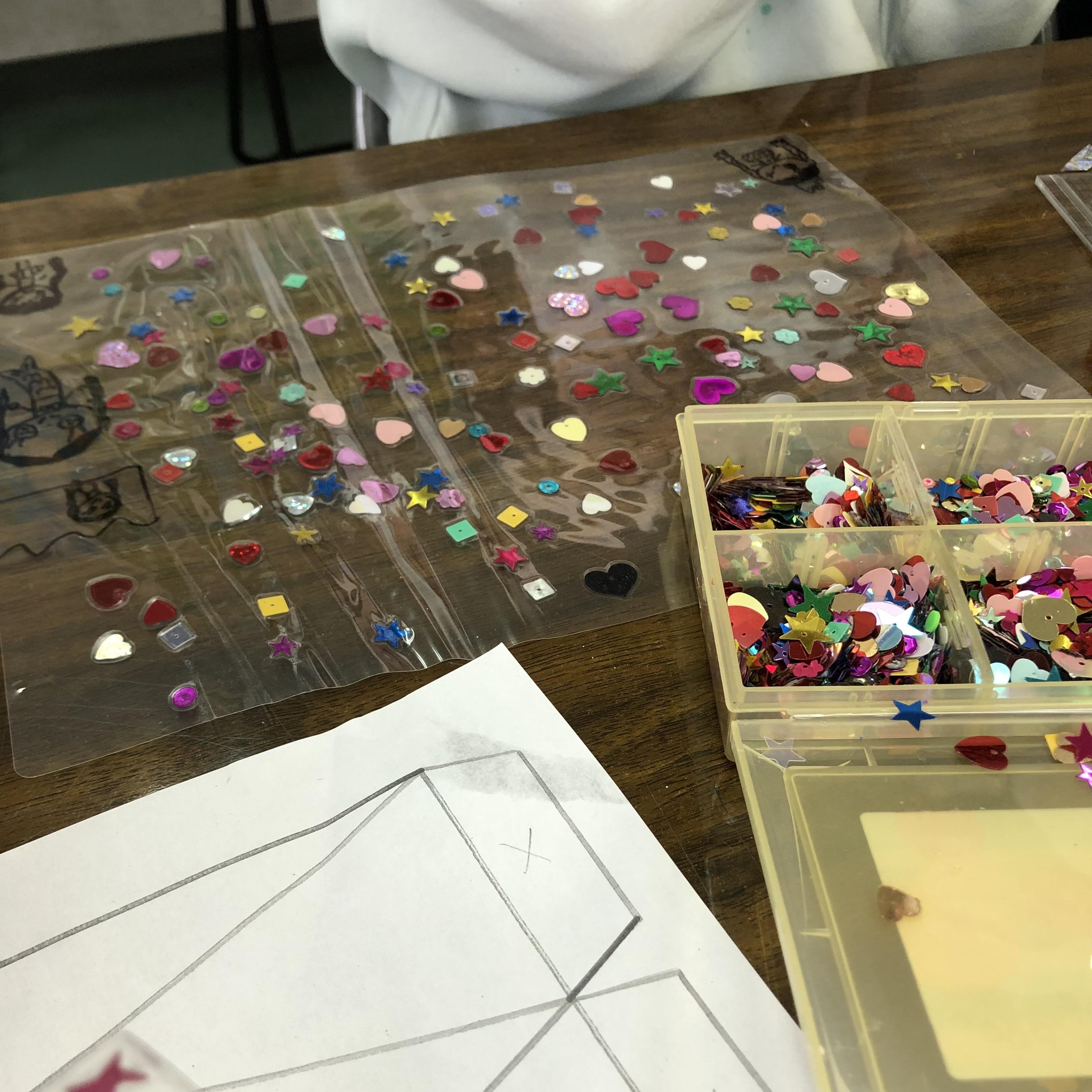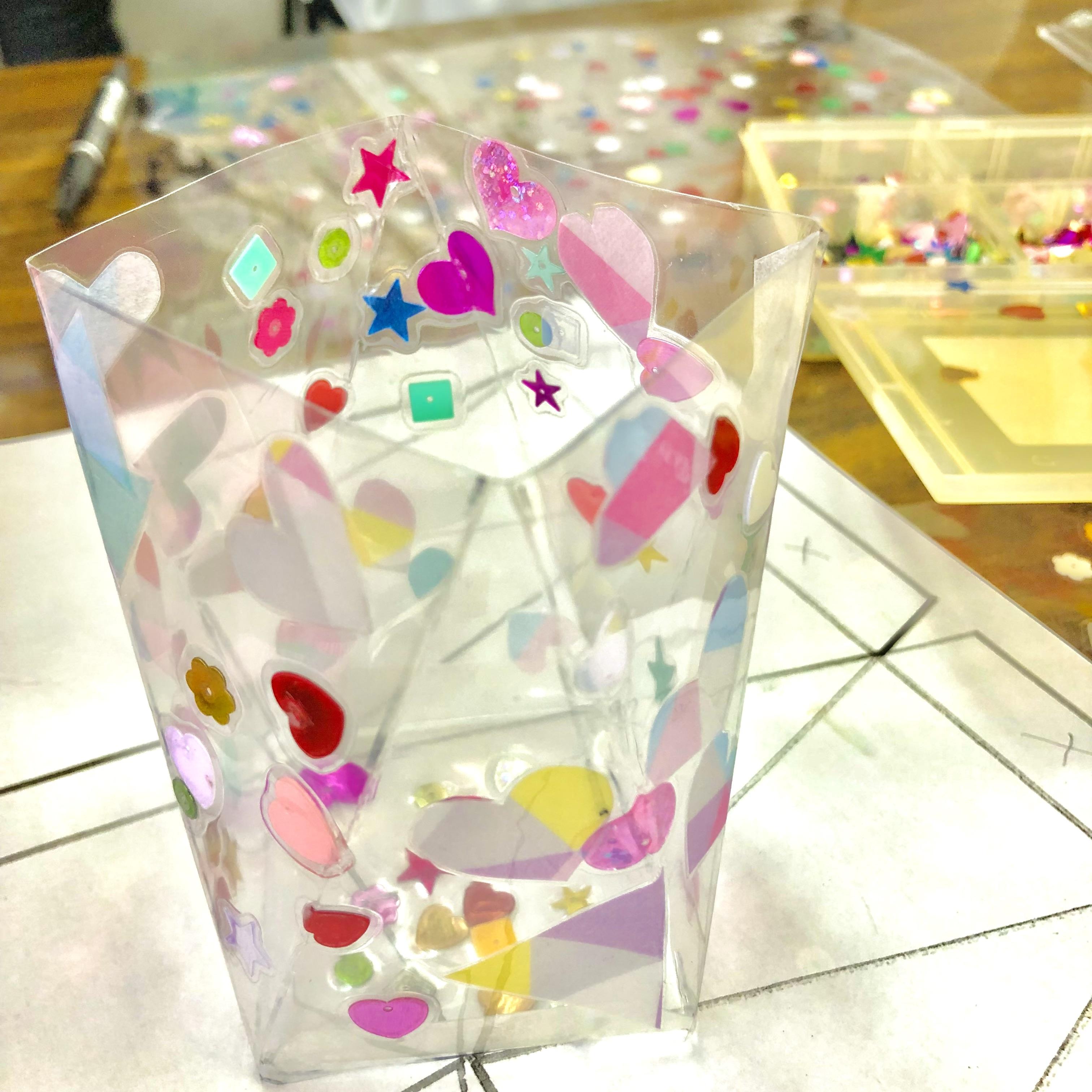 フィルムの中にセロハンの折り紙やスパンコールを挟んだり、
