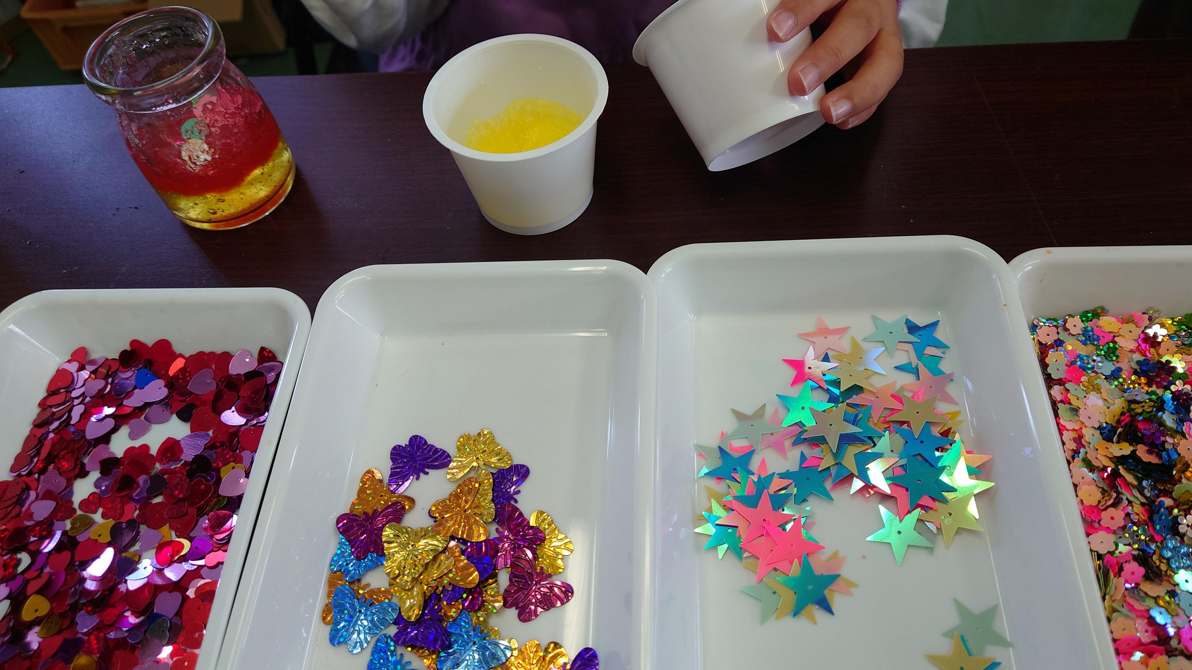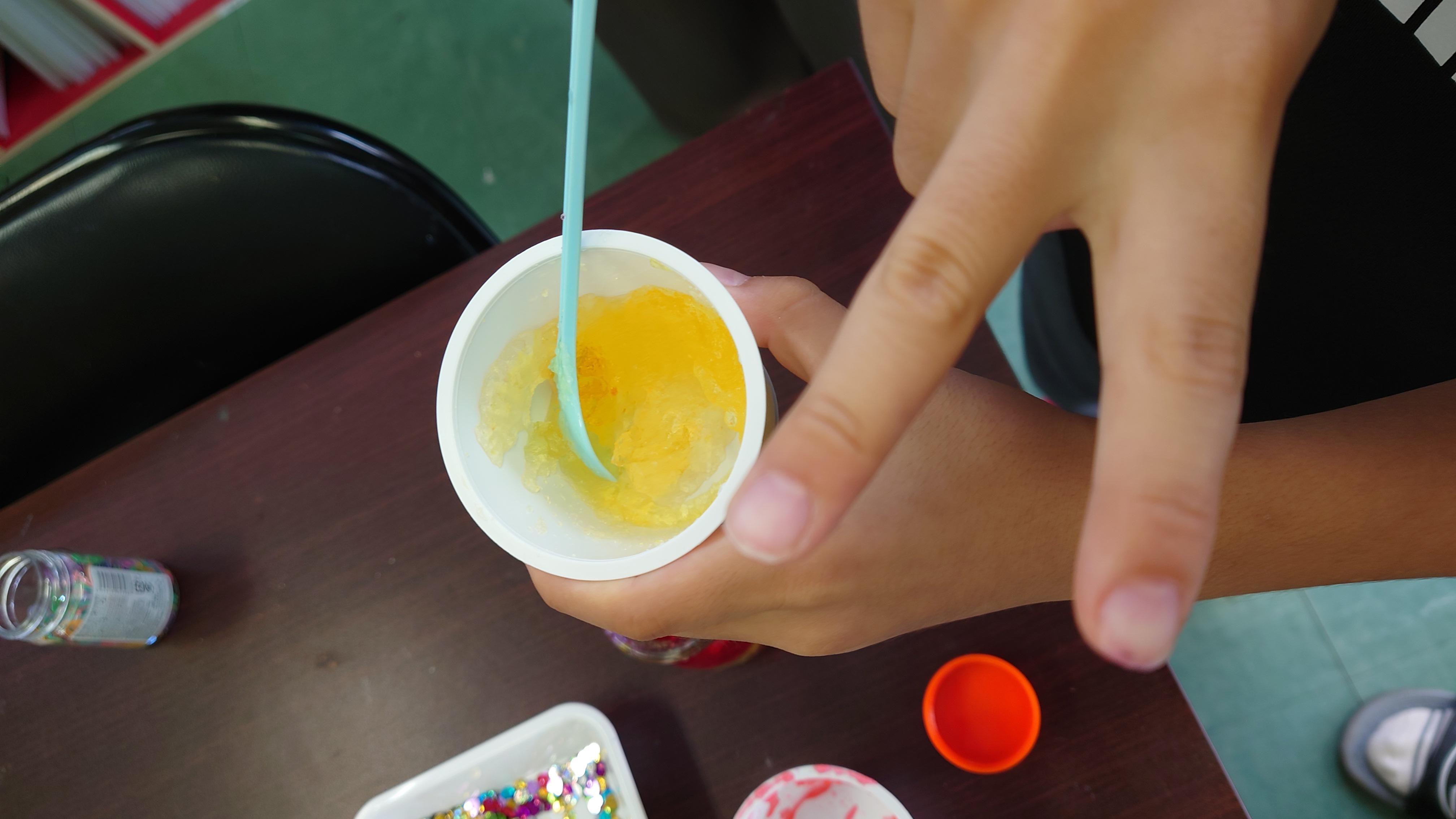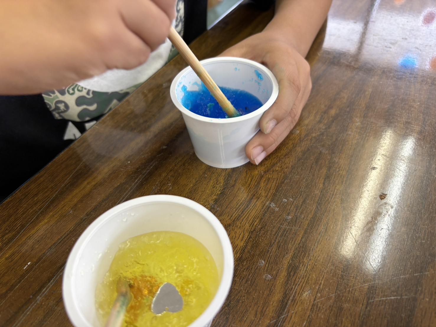 カップに保冷剤を適量いれて、そこに今回はインクで着色しました☆