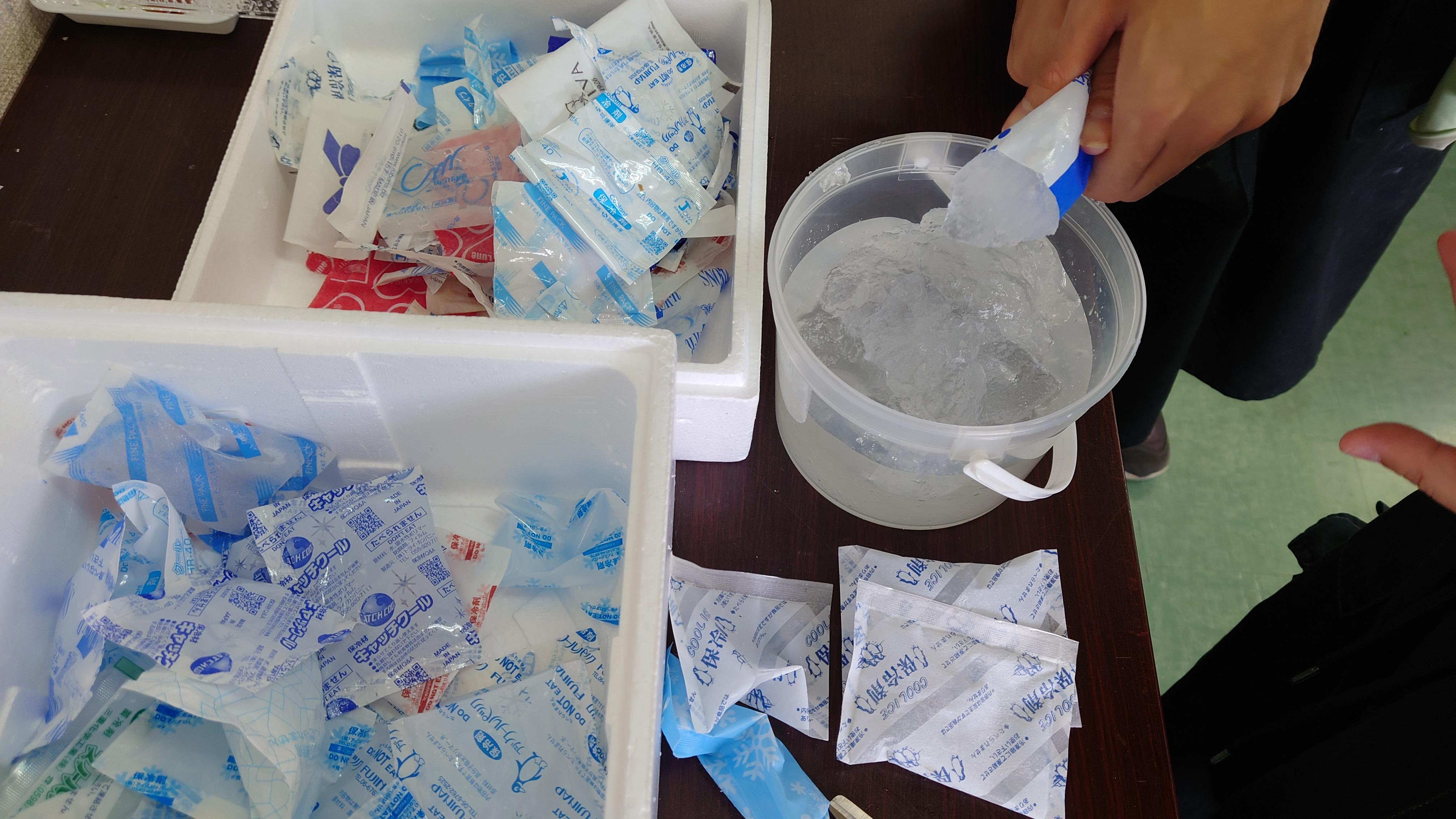 たくさんの保冷剤を集めて、バケツに入れていきました。